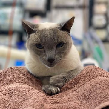 Jon was a bad-to-the-bone street cat from Chevron Island until one fateful day in 2012. Jon was hit by a car and presented to Dr Rich in critical condition. Dr Rich and his team stabilised Jon, wired his fractured jaw and treated his numerous wounds. During his recovery, the team fell in love with Jon and his larger-than-life personality and he became a permanent fixture in the clinic.